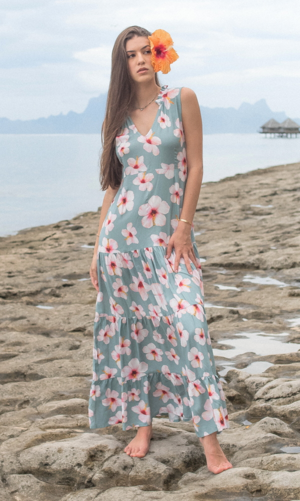 Discover the Angie long dress: effortlessly elegant with delicate folds at the neck and a flattering V-neck design. Sleeveless and stylish, this dress exudes timeless charm for any occasion.